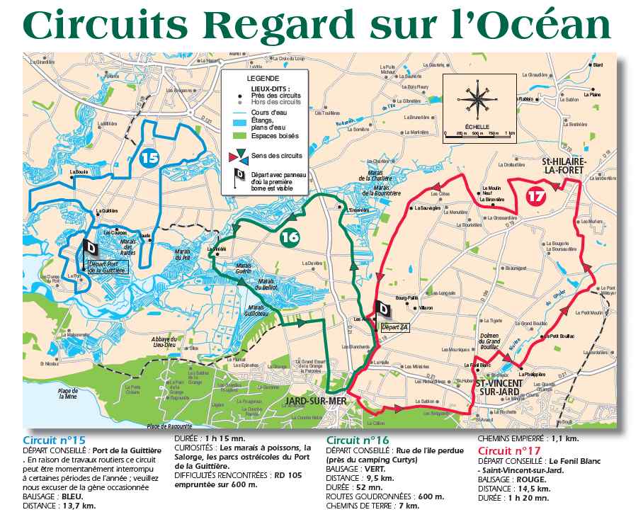 In Richtung Les Sables D'Olonne ist es die Piste N° 14, welche von Jard zum Port de Bourgenay und weiter auf der Piste N° 13 nach Chateau D'Olonne führt. Von dort aus kann man auf der Piste N° 12 die Gegend rund um Les Sables D'Olonne erkunden.